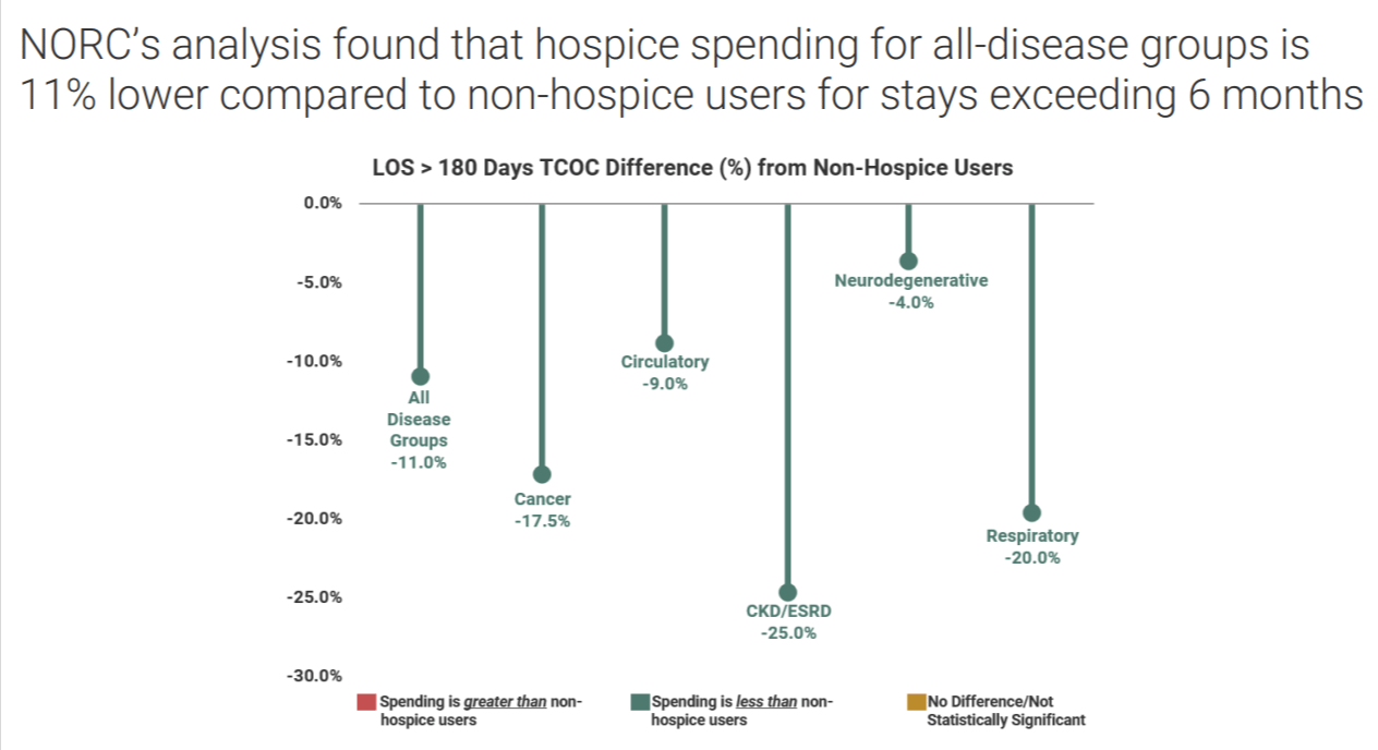 Hospice utilization varies WILDLY! But for all hospice primary diagnosis types, the greatest savings are in the time periods of 6 months or more