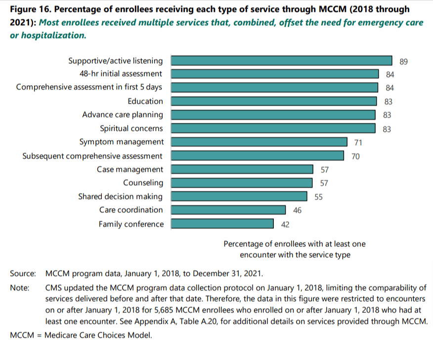 From 2015 to 2021, the CMS Innovation Center tested a model that they hoped would encourage more patients to opt into hospice at the end of life by offering MCCM as an option in a “no wrong door” approach to referring to end of life care.