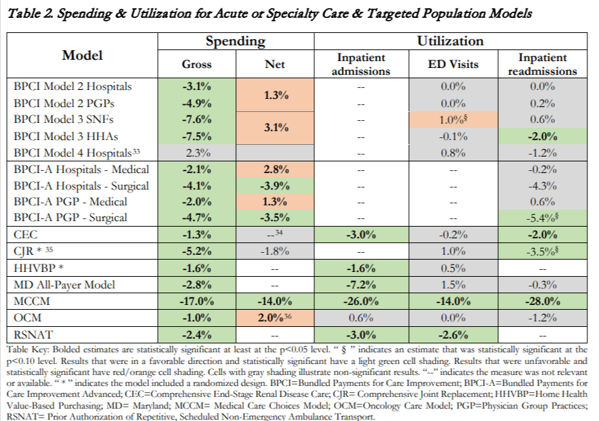 As you can see in the report linked below, the Pioneer ACO Model and the ACO Investment Model had the highest degree of success in the Population-Based models evaluated.