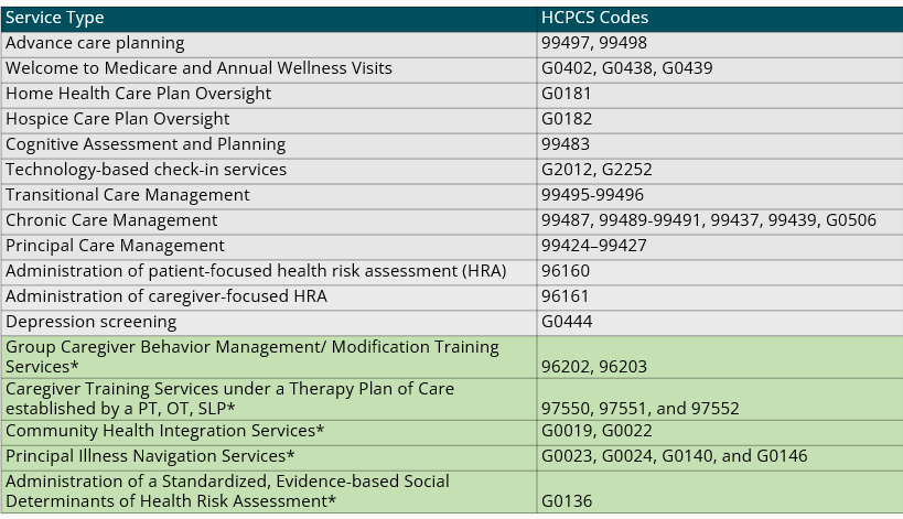 Let’s look at the Guiding an Improved Dementia Experience, or GUIDE Model, for dementia and its code for the Dementia Care Management Payment (DCMP). It’s meant to replace all these services below. 👇️