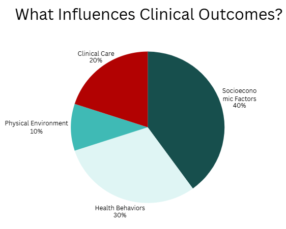 We’ve long known that about 80-90% of clinical outcomes are not the result of clinical care. Clinical care is defined here as treating clinical conditions.